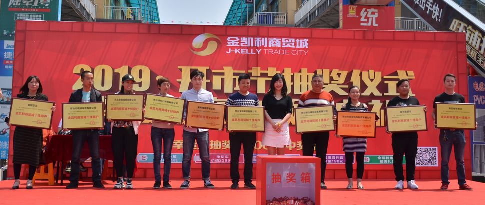 2019年5月4日上午,金凱利商貿(mào)城五金機(jī)電市場“2019·開市節(jié)”抽獎儀式暨最佳商戶頒獎典禮于金凱利商貿(mào)城隆重舉行。在市場商戶與各界媒體的共同見證下,黃金大獎、雙開門冰箱、電動車等眾多精美禮品成功送出。