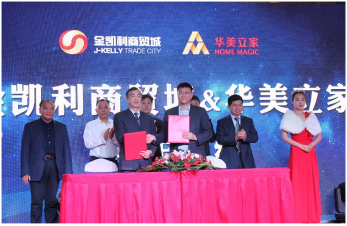 隨著金凱利集團總經(jīng)理俞祖放與華美立家副總裁侯宇彤在到場領(lǐng)導(dǎo)和嘉賓的見證下正式簽約。同時,馬可波羅瓷磚和蒙娜麗莎瓷磚也簽約進駐金凱利商貿(mào)城,本次簽約儀式也落下帷幕。