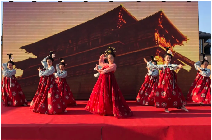 “清風(fēng)故影 夢(mèng)回府前”大型沉浸式國(guó)潮演藝博得參展群眾的眼球,大家紛紛駐足打卡拍照參與互動(dòng)。盛世群舞(漢風(fēng)舞蹈)、麗人行(快閃)、十二花神巡游(舞蹈)、漢婚禮儀展示等節(jié)目正輪番上演。沉浸式古風(fēng)集市內(nèi),身著漢服的美麗小姐姐正在熱情地為群眾點(diǎn)朱砂、印花鈿。房展會(huì)逛累了,想輕松一下的群眾,在投壺賽場(chǎng)一決高下。想留紀(jì)念的,則換裝漢服后打卡拍照。房博會(huì)的亮點(diǎn)“國(guó)潮”風(fēng)格體現(xiàn)得淋漓盡致。